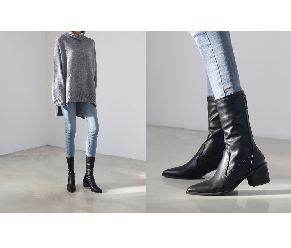 무겁지 않은 무게감으로 심플하게 디자인 되어 부츠매니아들의 필수 소장템으로 자리매김 하는 미들굽의 미들부츠입니다.