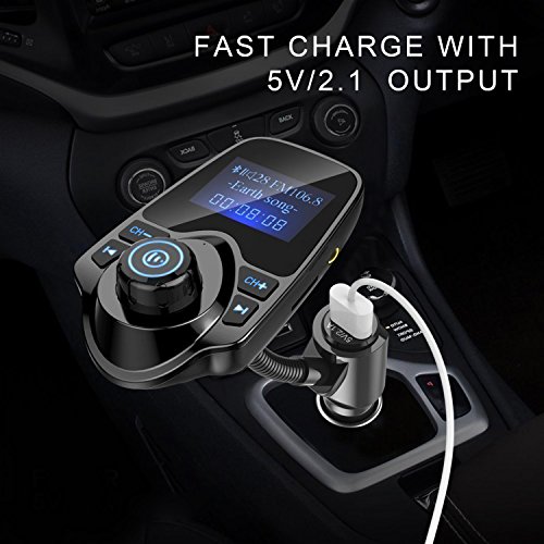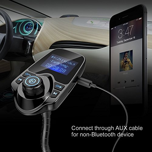 - 【Hands-free Calling】Built-in microphone, the Bluetooth FM transmitter enables you to answer, hang up, reject a call or redial the last number with ease. Furthermore, the transmitter will automatically connect to its last paired Bluetooth device when powers on next time.