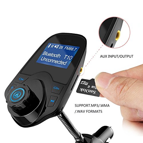 - 【4 Modes】The car FM transmitter can play music from Bluetooth-enabled device to car stereo via FM signal. It can stream music from TF card with a capacity of up to 32G. Additionally, it can transmit music from your MP3 player, old speaker and tablet to the car stereo system via the provided 3.5mm audio cable.