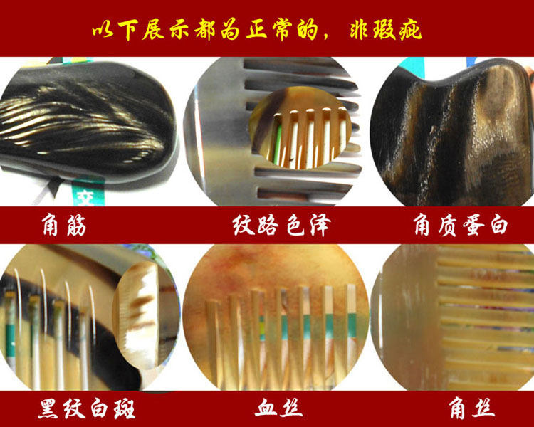 牛角梳头能在按摩大脑头皮头部神经时促进血液循环,疏通经络无形中渗入人体,经常使用角梳能有效的防白发,减少脱发,断发及消除头皮屑, 救援全身酸痛