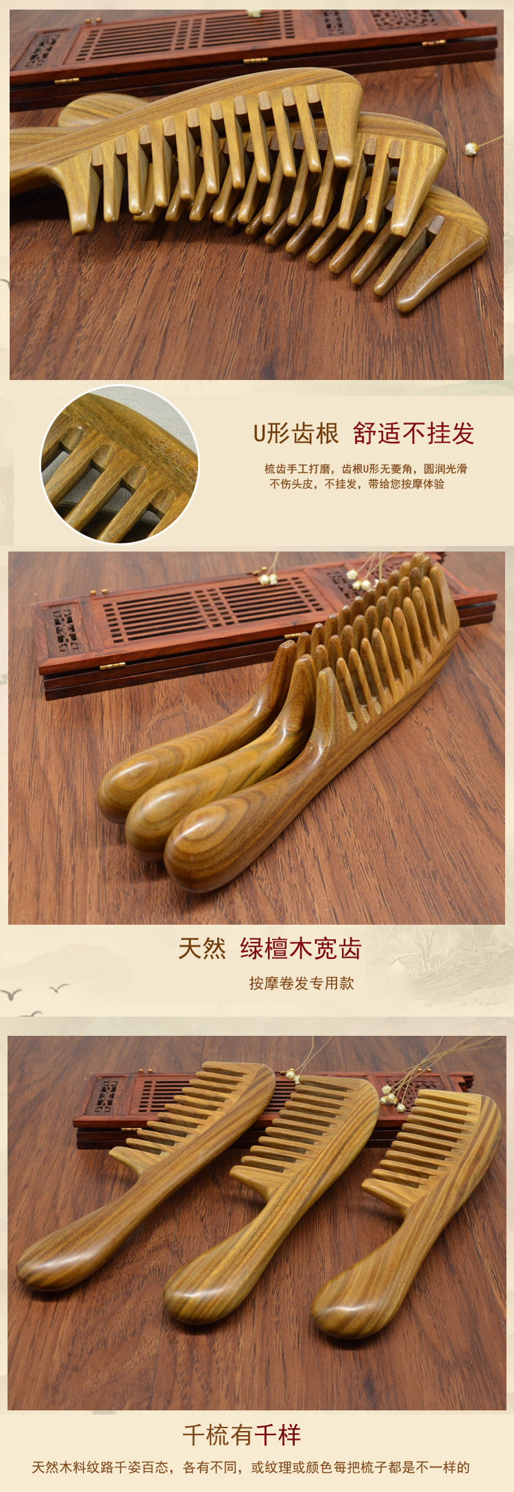 WIDE TOOTH LONG Comb 天然绿檀木梳子
