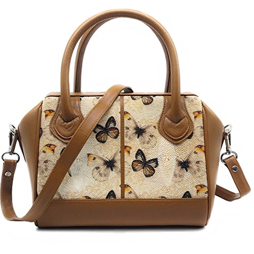 TREASURE Stingray Genuine Leather Handbag & Sholuder Bag (Yellow Butterfly)