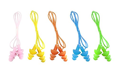 BESTCYC 5pcs Colorful Silicone Earplugs Swimmers Soft and Flexible Gel Corded String Ear Plugs ...