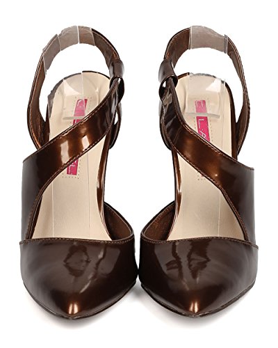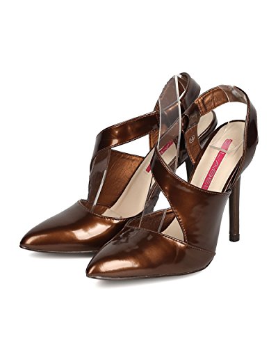 (C LABEL)/Women's/Pumps/DIRECT FROM USA/C Label FF81 Women Patent Leatherette Pointy Toe Wraparound s tiletto Pump - Bronze