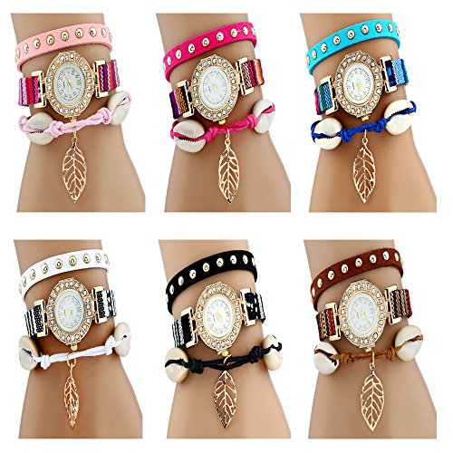 -. Title : CdyBox Women's PU Leather Band Rivet Wrist Watches Handmade Braided Girl's Bracelet(6 pack)