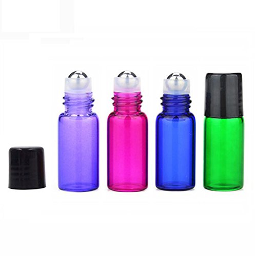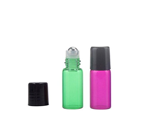 20 Packs DIY Mini Tiny Mixed Color Glass Rollerball Bottles Essential Oil Roller Bottles Empty Travel Refillable Aromatherapy Perfume Lip Balm Roll On Bootles...