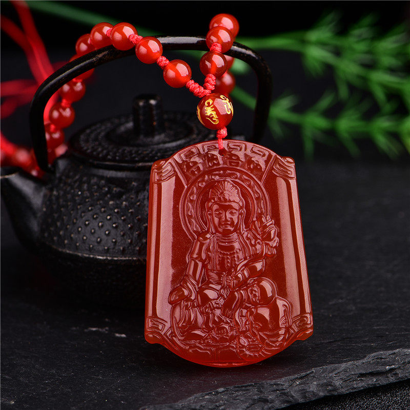 红玛瑙生肖守护神吊坠普贤菩萨属龙属蛇本命佛平安玉坠