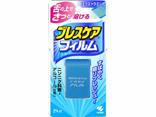 "Breath Care Film Extra Mint 24 Sheets" is a bad breath freshener (mint) that quickly dissolves on the tongue and clears the breath.