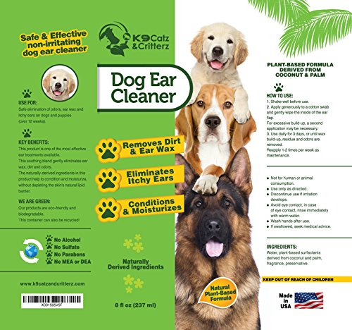 -. Title : Natural Dog Ear Cleaner. Gentle Cleansing Ear Drops to Prevent Ear Infection, Itching and Removing Dirt, Wax and Eliminating Odors. Made in USA. 8 Ounce by K9 Catz & Critterz