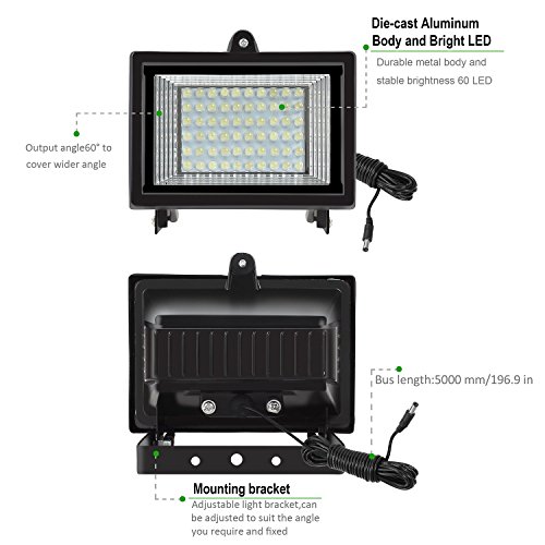 - 60 SUPER BRIGHT SOLAR LED: 300Lumen,120 degree beam angle,provide maximum illumination for large spaces
