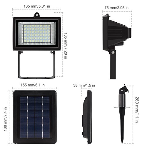 - IP65 RATING FOR WATERPROOFNESS: this solar flood light can be installed and left outdoors in any weather conditions all year round,just need to wipe out dust