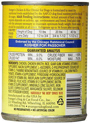 -. Title : EVANGER'S Classic Chicken and Rice Dinner for Dogs, 12 pack, 13-Ounce Cans