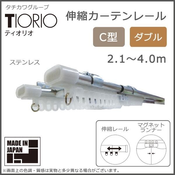 窓のサイズに合わせて伸縮できるカーテンレールです。丸みのあるC型タイプです。伸縮できるのでカットの必要がありません! 製造国:日本 素材・材質:ステンレス 商品サイズ:2.1~4.0m ※サプライヤー直送品 ご注文後3~4営業日後の出荷となります【商品名】タチカワグループ ティオリオ 伸縮カーテンレール C型 ダブル 2.1~4.0m ステンレス
