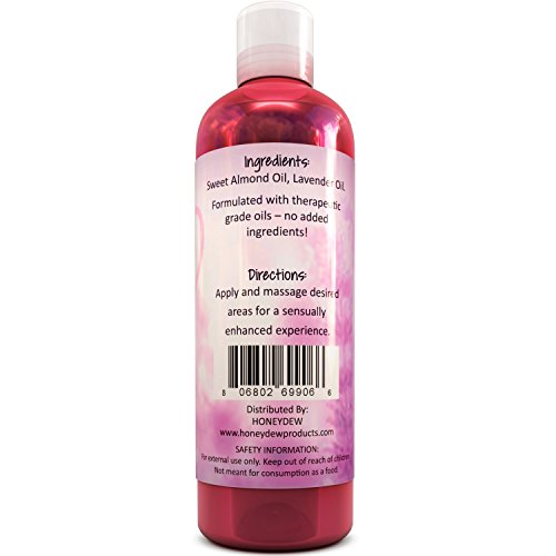 PREMIUM LAVENDER BOTANICAL BLEND in this aromatherapy oil will leave you and your lover aroused and exhilarated. Soothing Lavender oil is known for its de-stressing capabilities which will help you relax your mind and muscles. Almond oil contains vitamin E which helps repair skin cells and leaves the skin looking glowing healthy and vibrant. Together they leave you and your lover relaxed and in the mood for intimacy.