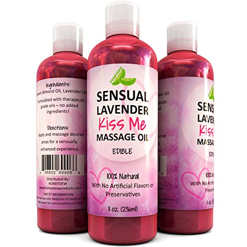 EDIBLE SENSUAL MASSAGE OIL for body is formulated with the perfect therapeutic blend of Lavender oil as well as Sweet Almond oil which work harmoniously for a sensual and soothing massage experience. This moisturizing oil is edible lickable and kissable making it perfect for erotic evenings in. It is formulated with a synergistic blend of incredibly emollient carrier oils that glide effortlessly over the skin for a friction free massage.