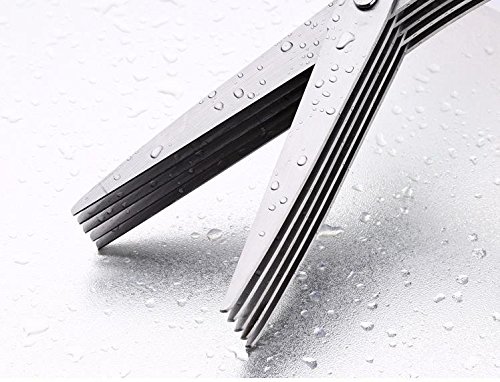 MOLDIY HERB SCISSORS STAINLESS STEEL - MULTIPURPOSE KITCHEN SHEAR WITH 5 BLADES AND COVER WITH CLEANING COMB
