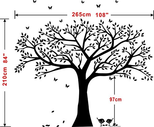 LSKOO Family Photo Frame Tree Wall Decals Family Tree Decal Living Room Home Decor (108" wide x 84" tall) (Black)