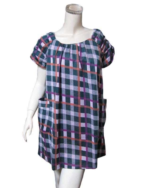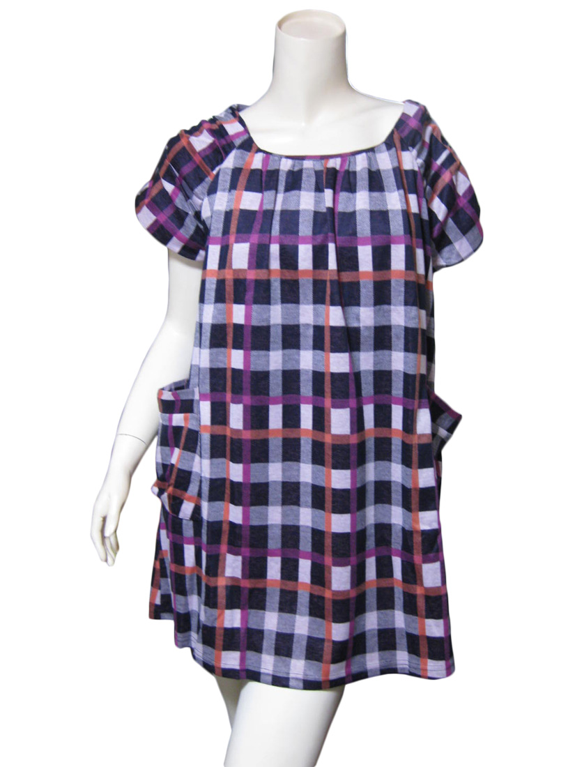チュニック ワンピース ストレッチ素材 チェック ギャザー ゆったり レイヤード
