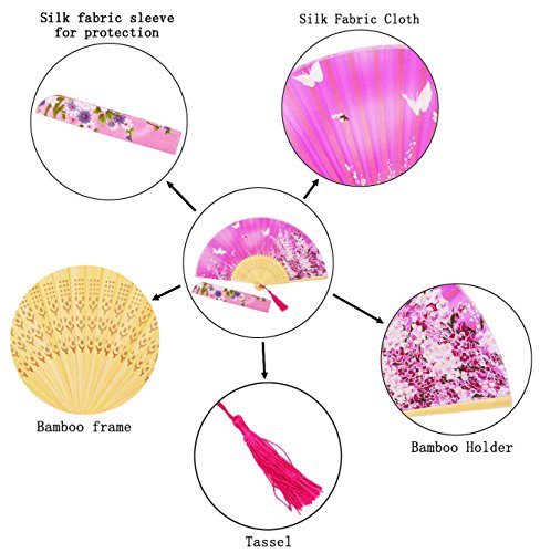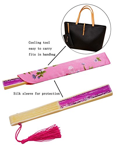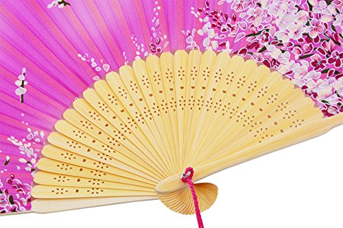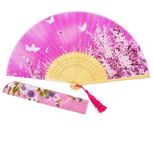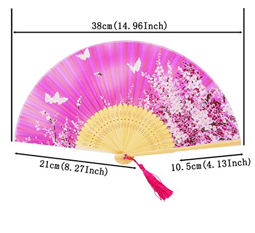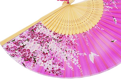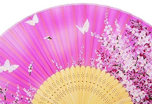 STHUAHE 8.27”(21cm) Sakura Butterfly Hand Painted Series Womans Silk Hand Help Folding Fans, Hollow Carved Bamboo Fan Frame Gift Fans Wedding Fan Dance Fan Princess Fan Craft Fan (HotPink)