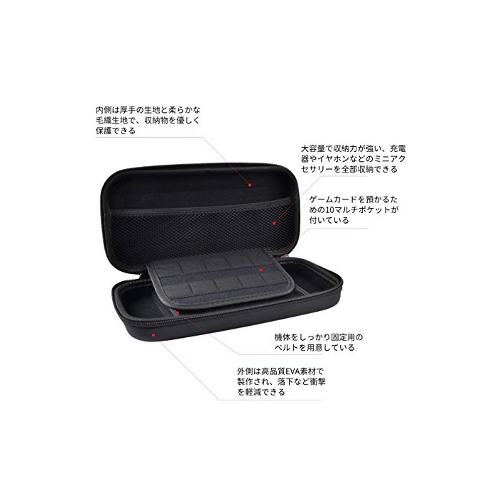 【내충격인 재질】경량으로 충격에 강한 EVA소재를 채용,백의 내부에는 바탕이 두꺼운 것의 원단에 상처 방지,충격 흡수성보다 뛰어나 있습니다. 본체 고정용의 신축성 밴드도 붙고, 게임기를 확실히 고정되고, 낙하 대책 입니다.