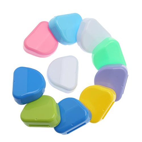 Product DescriptionHigh qualty colorful mouth guard cases. Assorted colors: blue, green, yellow, white, lime, light blue and lavender. 10 pcs per box. Retainer box size: W (3-inch) x D (2.5-inch) x H (1.6-inch).0