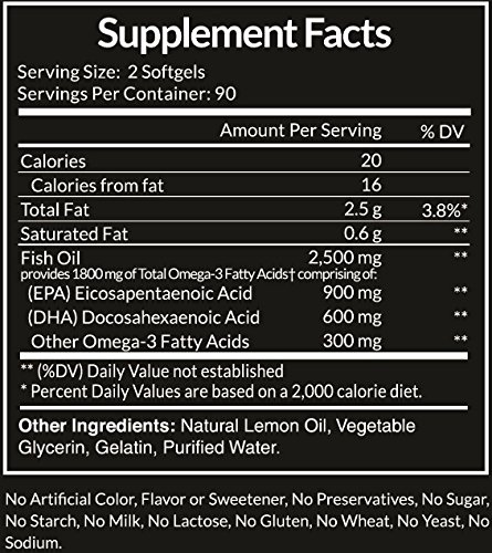 ✓AMAZING NATURAL FLAVOR: If you have ever used another fish oil Omega 3 supplement, you might have found out that it had horrible taste and even more horrible smell...These softgels have natural lemon flavor and have been made to eliminate that annoying "fishy" smell, taste and burps. Enjoy the health benefits of omega-3 without killing your taste buds!