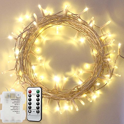 Remote Fairy String Lights Warm White,33ft 10M 100 LED Waterproof Battery Powered Ambiance Lighting With Remote for Indoor,Outdoor,Patio,Lawn,Landscape,Wedding,Christmas