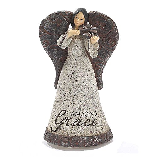 Filigree Angel with Violin Textured Grey 4 x 7 Resin Musical Figurine Plays Tune Amazing Grace