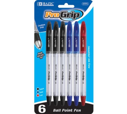 -. Title : Bazic Products 1771-144 BAZIC Progrip Assorted Color Stick Pen with Grip - 6-Pack Case of 144