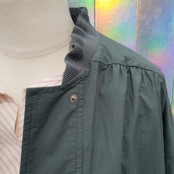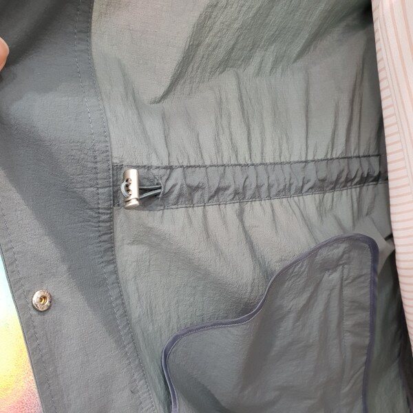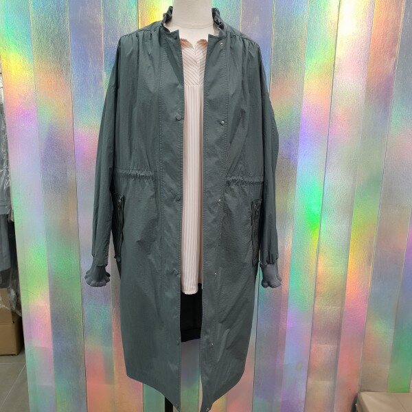 얇고 가벼운 롱자켓입니다넥,소매 쭈리가 포인트이며허리스트링 조절이 가능합니다