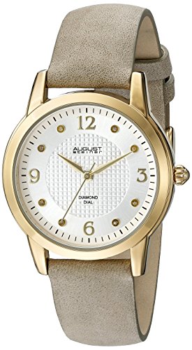 -. Binding : Watch -. Brand : August Steiner -. Color : Gold -. Department : womens -. EAN : 0848572070836 -. Feature : Silver embossed box pattern center dial with three hand movement / Individually hand applied gold tone Arabic numeral hour markers with gold tone alpha style hour and minute hands / Polished gold tone alloy case with beige suede leather strap and tang buckle / Japanese quartz movement with analog display / Water-resistant to 30 M (100 feet) -. Label : TWI Watches, LLC -. Manufacturer : TWI Watches, LLC -. Model : AS8198WTG -. MPN : AS8198WTG -. PackageQuantity : 1 -. PartNumber : AS8198WTG -. ProductGroup : Watch -. ProductTypeName : WATCH -. Publisher : TWI Watches, LLC -. Studio : TWI Watches, LLC -. Title : August Steiner Women's AS8198WTG Round Silver Embossed Box Pattern Center Dial Three Hand Quartz Movement Gold Tone Strap Watch -. UPC : 848572070836