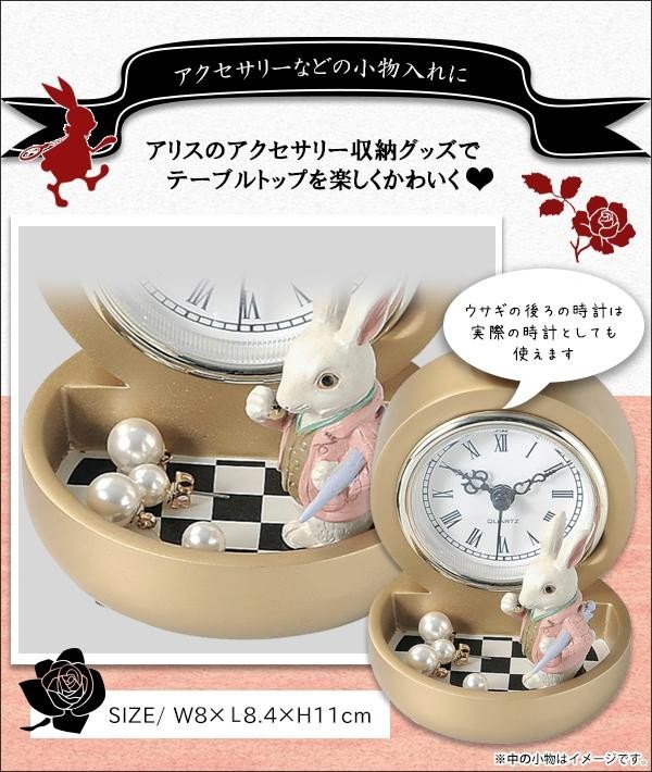 トレイ部分にはアクセサリーやカギなどの小物を収納できます。ウサギの後ろの時計は実際の時計としても使えるのでとても便利。