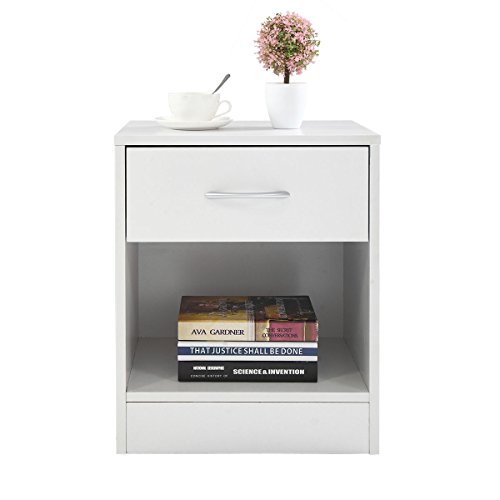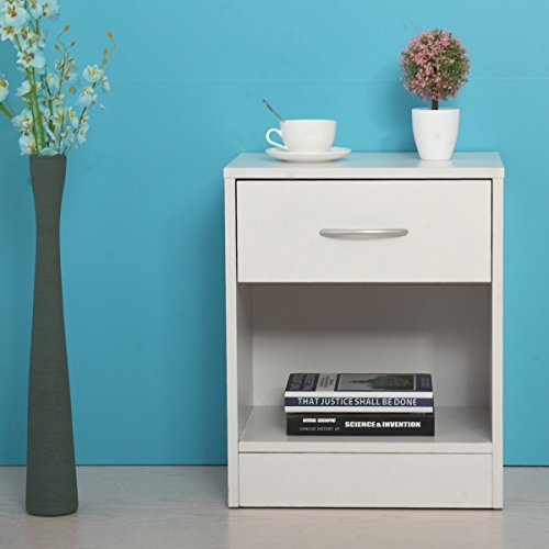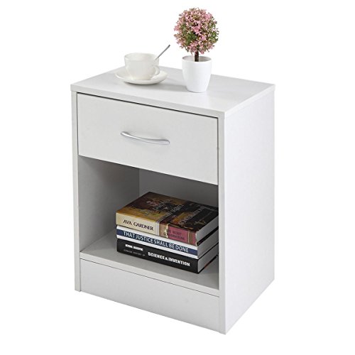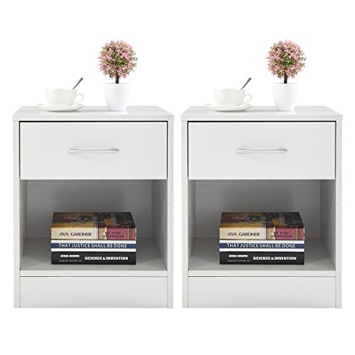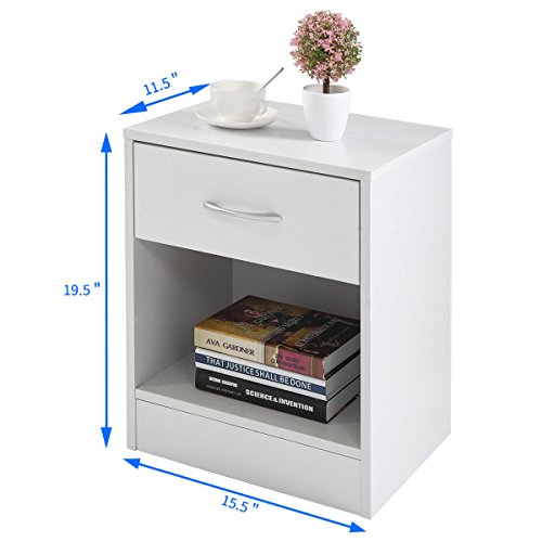 These tables have a classic design and feature one drawer that can be used for personal accessories. Also it owns a large open space that can be utilized for storing large objects. It is functional and suitable for any room. Specifications: Color: White Frame: MDF Board Overall Dimensions: 15.5" x11.5"x19.5" (L x W x H) Each Net Weight: 17 lbs Drawer Size: 14.4" x5.7" Height From The Bottom To Floor: 4" Package Includes: 2 x Table 1 x Instruction Manual 0