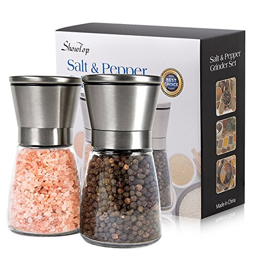 ShowTop No.1 Premium Stainless Steel Salt and Pepper Grinder Set Adjustable Pepper Mill Salt Shakers Set of 2