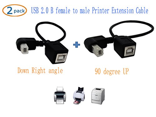 USB 2.0 Type-B Printer Cable,SinLoon(2-PACK) USB 2.0 B female to Type-B male (90 degree UP + Down Right angle ) Printer short Extension Cable for Printer, Scanner , Mobile HDD and More (UP-DOWN)