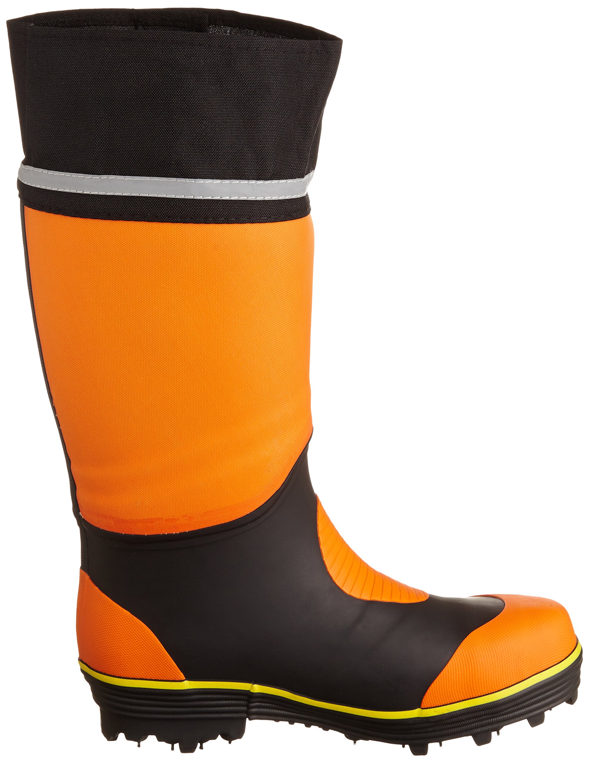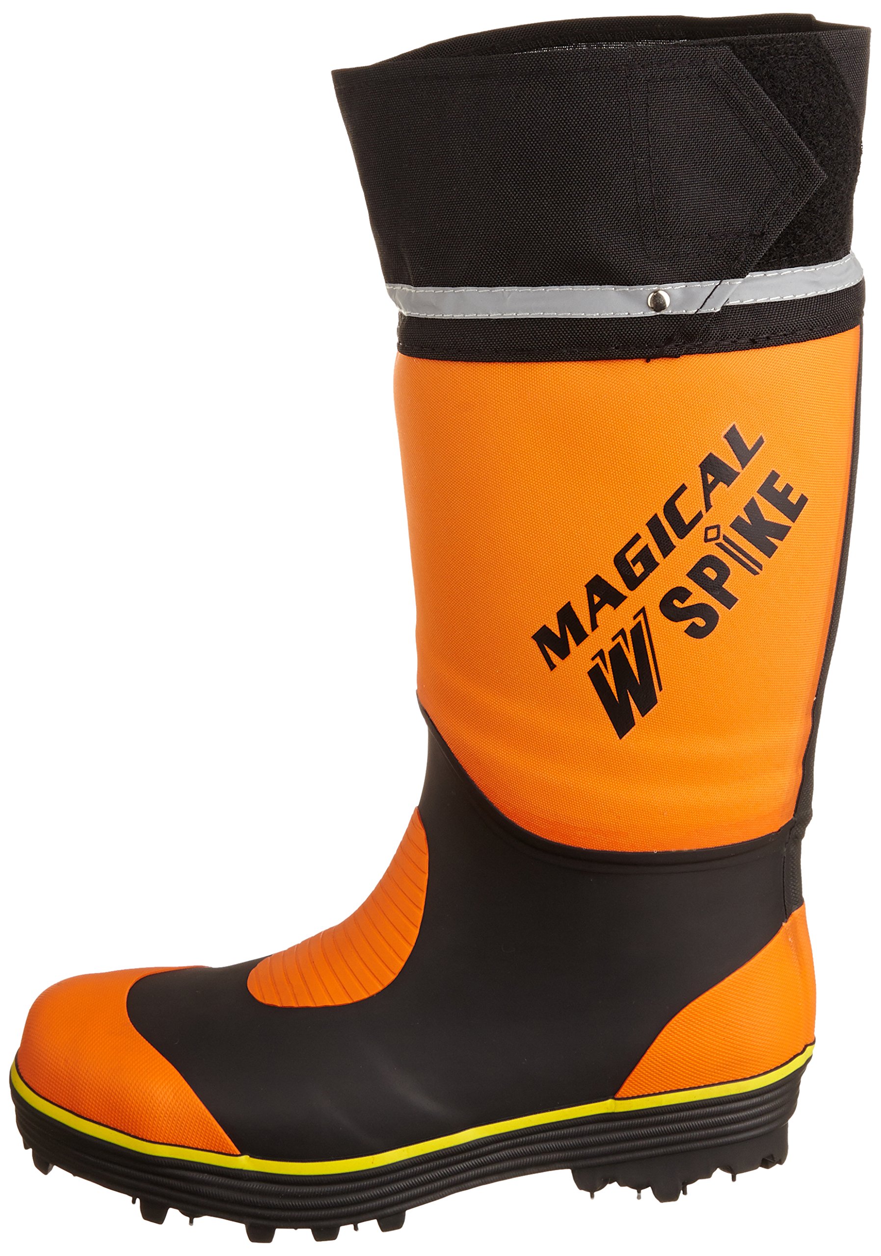Safety spike boots best suited for work in forestry work, civil engineering work and sloping land with steel front core.