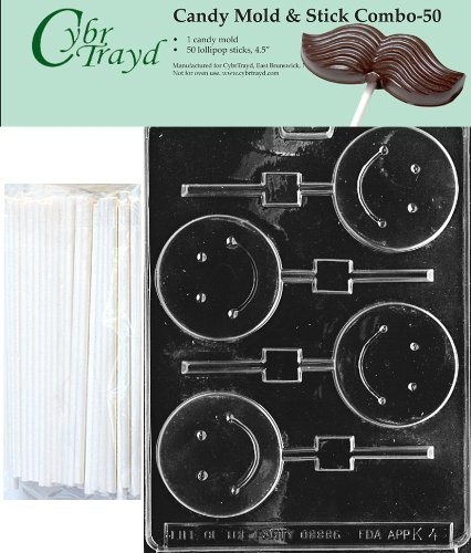 Cybrtrayd 45St50-K004 Smile Lolly Chocolate Candy Mold with 50 Cybrtrayd 4.5" Lollipop Sticks