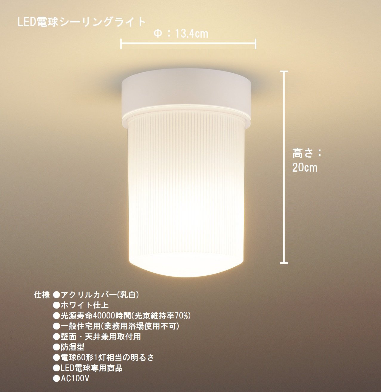 ● Acrylic cover (milky white) ● White finish ● Slide pack packaging: height 35.1 × width 19 × depth 13.7 cm ● light source life 40000 (luminous flux maintenance rate 70%) ● for general residential use (business bath no use) ● wall ·