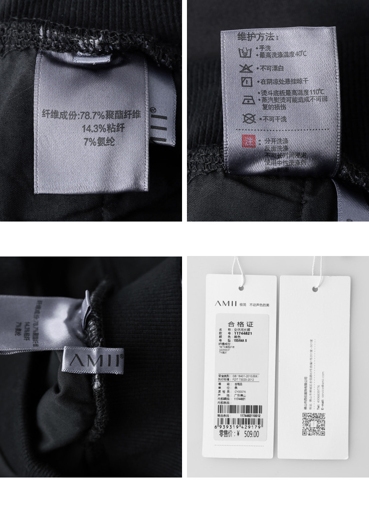 | 洗涤标准: | 悬挂晾干不可干洗不可漂白不可浸泡110℃以下垫布熨烫40℃以下手洗 |