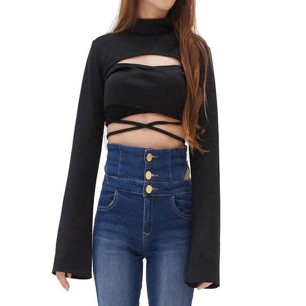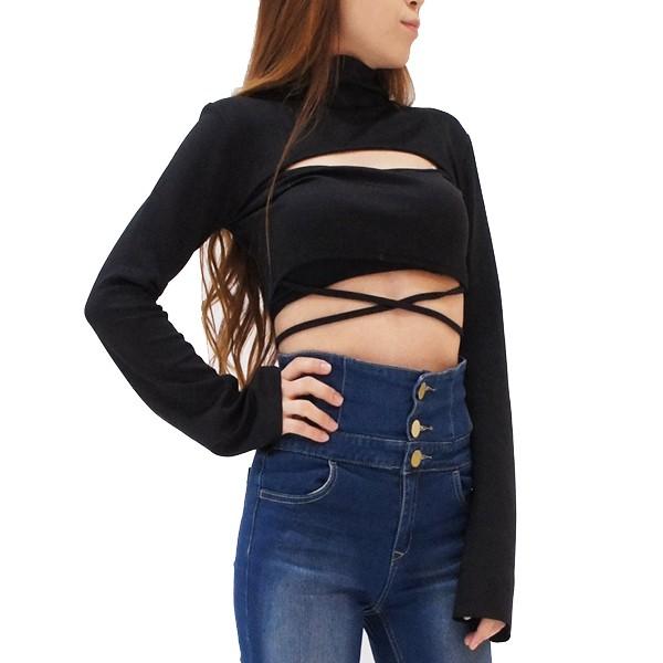 | 【即納】ロングスリーブ 胸開き セクシー トップス 長袖 黒 無地[ネコポス可] 【ロングスリーブ 胸開き トップス カットソー レディース 女性 セクシー 肌見せ 黒 ブラック 長袖 ショート丈 ボトル ハイネック リボン 紐 スリーブ ダンス衣装 ヒップホップ ストリート】 | |