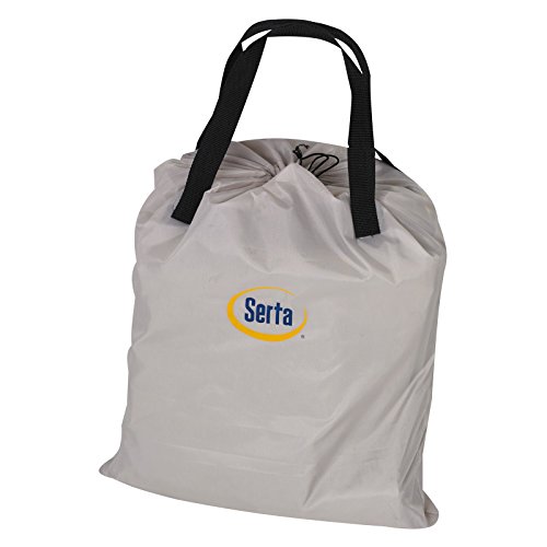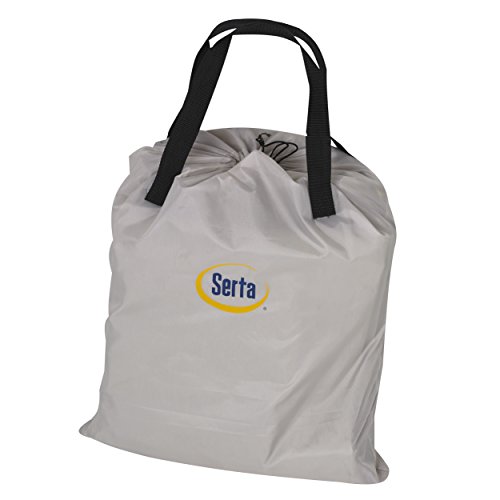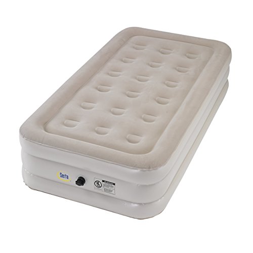 Studio : Serta Publisher : Serta Binding : Sports Product Description Never worry about where your guests are going to sleep with the Serta 16 in.Airbed with External AC Pump. This mattress inflates quickly with the exernal pump and has a suede top to keep your standard-sized bedding snugly in place. The coil construction supports ensure a full night of sleep and the bed is compact and easily deflates when not needed. Made of PVC for long lasting use, comes in beige, and can hold up to 500 lbs. Available in a variety of sizes. Mattress made from PVC material. Suede top keeps bedding in place. Welded coil construction. Raised height. 0