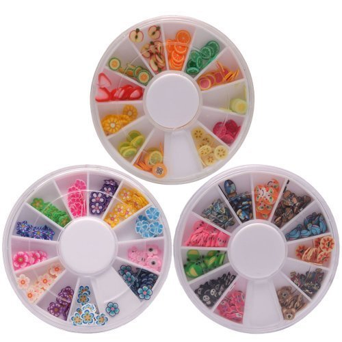 MBox 3 Wheels Combo 288pcs Animal&Fruit&Flower Shape Nail Art Fimo Slices Tips Decal Pieces 3D Decor