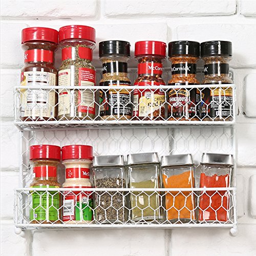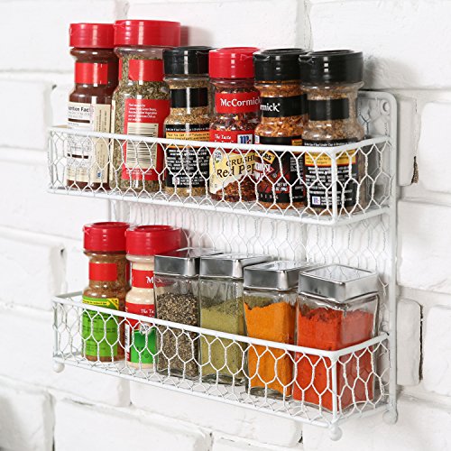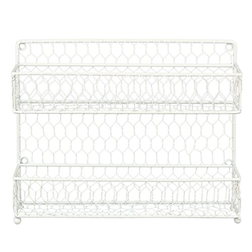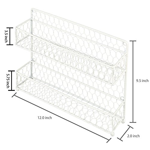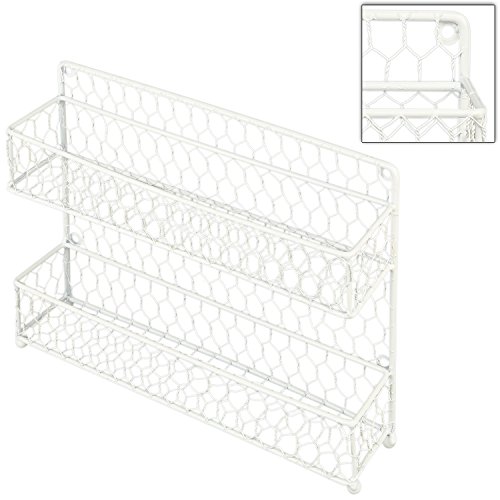 Country Style White Dual Tier Wire Kitchen Counter-top or Wall Mount Spice Rack Jars Storage Organizer