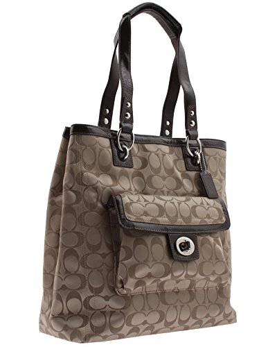 -. Brand : Coach -. Color : Khaki and Brown -. Department : womens -. EAN : 0886382170834 -. Feature : Signature khaki sateen fabric with brown leather trim / Magnetic snap top closure / Silver hardware / Separated by center zip compartment -. ProductGroup : Shoes -. ProductTypeName : HANDBAG -. Size : Medium -. Title : Coach Penelope Signature Satchel Tote 19262 -. UPC : 886382170834