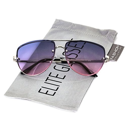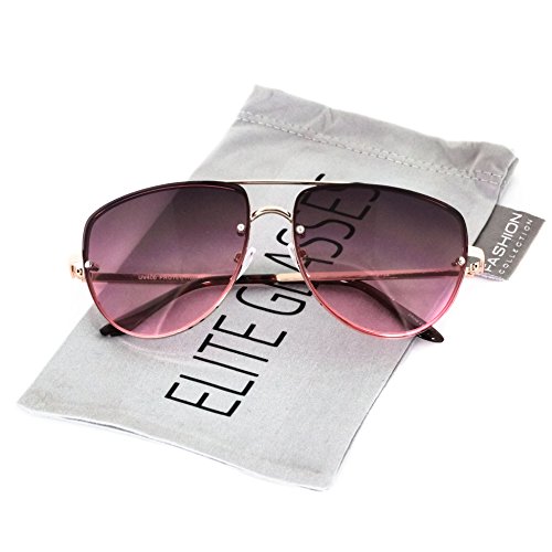 Elite Oversized Rimless Gradient Lens Metal Frame Mens Womens Vintage Aviator Sunglasses (Pink, 2.5)