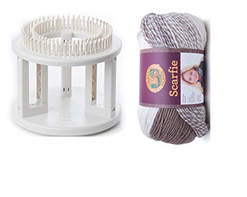 Knitting Loom and Yarn Bundle. Double Knit Loom with Scarfie Chunky Self Pattern Yarn (Cream/Taupe)