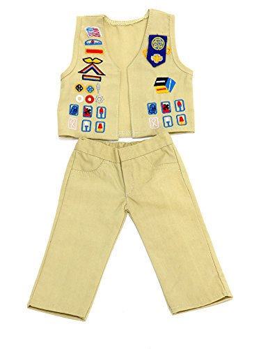 - Includes vest with embroidered patches, long sleeve t-shirt, pants, and socks. Doll is not included.