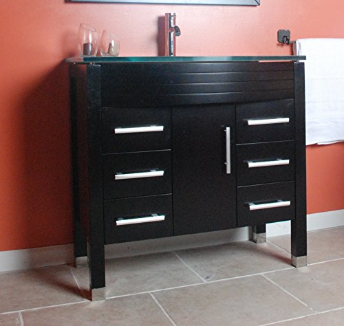 -. Brand : The Tub Connection -. Department : mens -. Feature : Solid Oak Wood Vanity Vanity Measures: 35 1/2" Length and 22 1/8" Depth and 34 3/4" Height (From Floor to Top of Sink) / Cabinet Has Open 1 Door Storage Cabinets and 6 Drawers all with soft closing hinges / 1 Single Stem Faucet- Upgrade yours to Brushed Nickel! Set includes drain assembly, supply lines, and P-Trap / 1- 27 1/2" Height x 34 3/4" Width Mirror with Mounting Bracket / 1- 3/4"Tempered Glass Basin Sink and Counter top -. Label : The Tub Connection -. Manufacturer : The Tub Connection -. Model : TTC730 -. MPN : TTC730 -. PackageQuantity : 1 -. PartNumber : TTC730 -. ProductGroup : Furniture -. ProductTypeName : HOME_FURNITURE_AND_DECOR -. Publisher : The Tub Connection -. Studio : The Tub Connection -. Title : 36 Inch Espresso Wood & Glass Single Basin Sink Bathroom Vanity Set-"Cyrus" -. Warranty : 1 year manufacturer's defect warranty