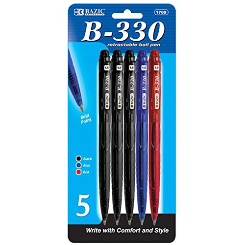 BAZIC B-330 Assorted Color Retractable Pen (5/Pack)
