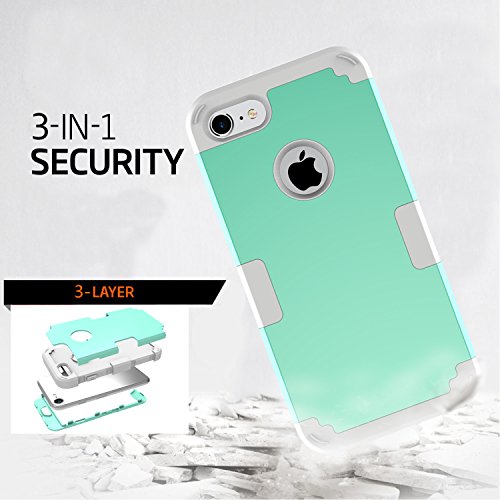 iPhone 7 Case, SinYong (PC+ Silicone) Anti-slip Shockproof Dustproof slim and stylish protective case for apple iphone 7 4.7 inch (2016) (Mint+Grey)